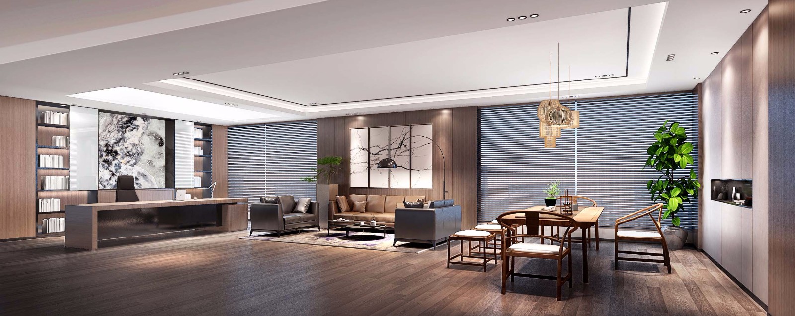 老總辦公室彰顯一個(gè)企業(yè)領(lǐng)導(dǎo)的風(fēng)格和品位, 還能體現(xiàn)一個(gè)公司的形象, 表達(dá)一個(gè)企業(yè)的文化價(jià)值。在功能上:作為工作和休息兼得空間,應(yīng)該具備穩(wěn)重、大氣舒適安靜的特點(diǎn),老總辦公室裝修需要貼合主人的年齡、性格、興趣愛好來選擇設(shè)計(jì)風(fēng)格是沉穩(wěn)寧靜還是現(xiàn)代時(shí)尚。